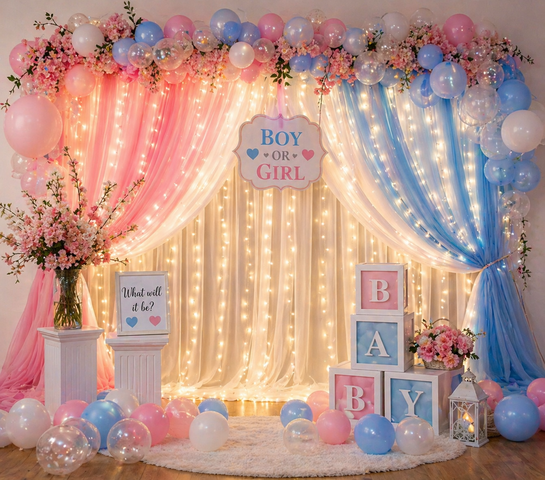 Make your gender reveal look absolutely unforgettable with our amazing curtain lights! ✨💙💖