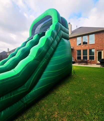 Get ready for the ultimate backyard splash with The Gecko 18ft Waterslide! This towering green giant features a thrilling drop that leads straight into an extra-big pool, making it the perfect centerpiece for any celebration. Designed with durability and safety in mind, it’s not just for the kids—the reinforced structure and deep landing pool mean adults can join in on the fun, too. Whether you're hosting a birthday party or a family reunion, this slide promises high-speed excitement and a cool escape for guests of all ages!