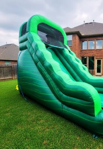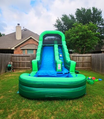 Get ready for the ultimate backyard splash with The Gecko 18ft Waterslide! This towering green giant features a thrilling drop that leads straight into an extra-big pool, making it the perfect centerpiece for any celebration. Designed with durability and safety in mind, it’s not just for the kids—the reinforced structure and deep landing pool mean adults can join in on the fun, too. Whether you're hosting a birthday party or a family reunion, this slide promises high-speed excitement and a cool escape for guests of all ages!