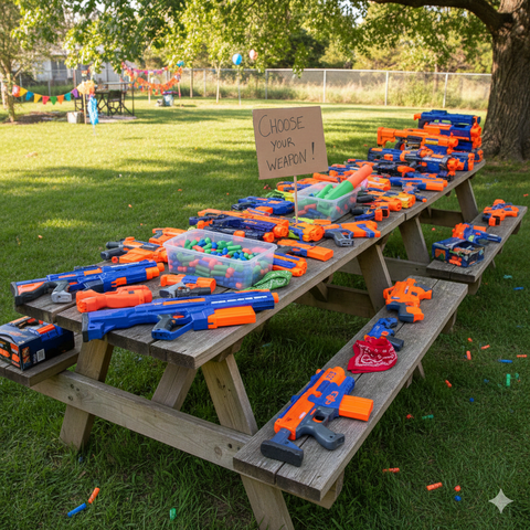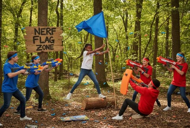 For the ultimate Nerf battle experience, choose The General package! This top-tier, overnight rental transforms your space into an epic battlefield, providing 15 Blasters and 15 sets of goggles for your entire squad. To create the ultimate war zone, you'll receive 3 specialized obstacles for strategic cover, plus a massive, exciting Bounce House that doubles as an imposing, central fortress for ultimate protection and fun. Get ready for hours of strategic gameplay!