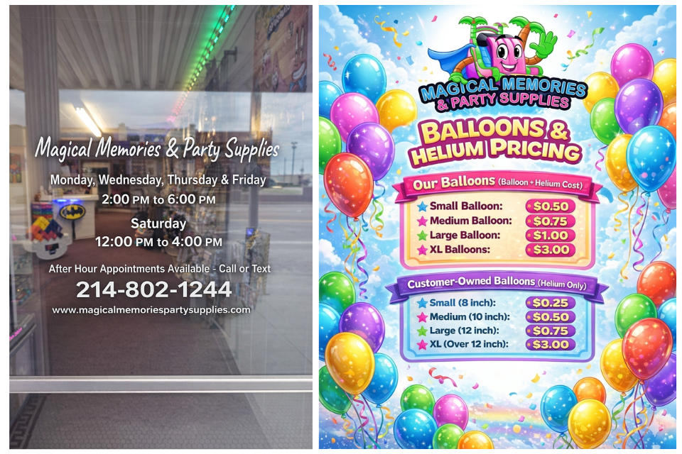 Customers are welcome to bring their own balloons and use our in-store helium station. You can inflate your balloons and use our workspace to build your own custom party balloon bouquet. It’s a fun and easy way to create the perfect balloon setup for your celebration!